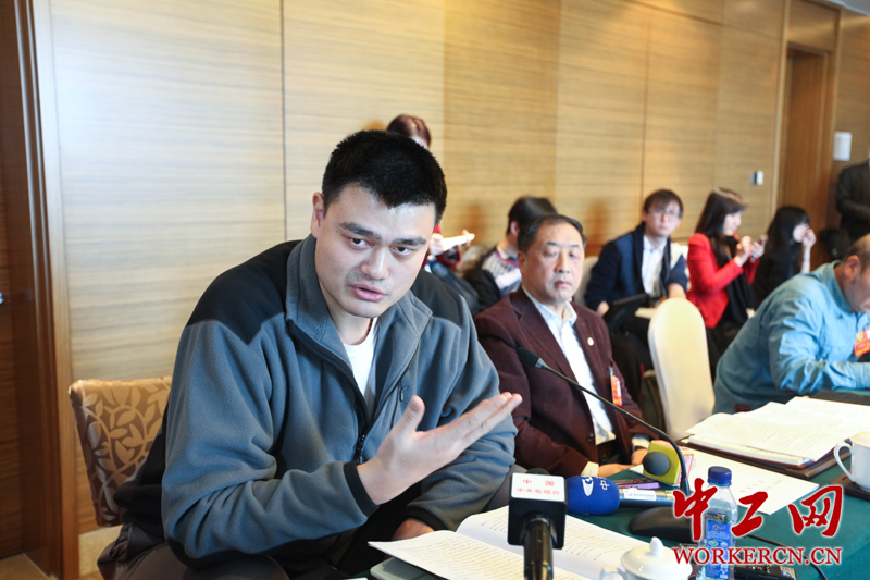 2013年3月4日上午,体育界别召开小组讨论会,政协委员姚明关注教育问题,他在会上发言时说,“其实体育也是教育的一部分,虽然我们是竞技体育,其实比赛的输赢不是那么重要,更重要的是体育精神能对青少年的教育起到促进作用。”这是姚明作为全国政协委员的首次发声。作为全国“两会”上的“一年级新生”,姚明委员的首份提案——“呼吁改革管理体制、开放人才选拔、促进中国篮球可持续发展”也得到了媒体的广泛关注。 (中工网记者 韩靖摄)