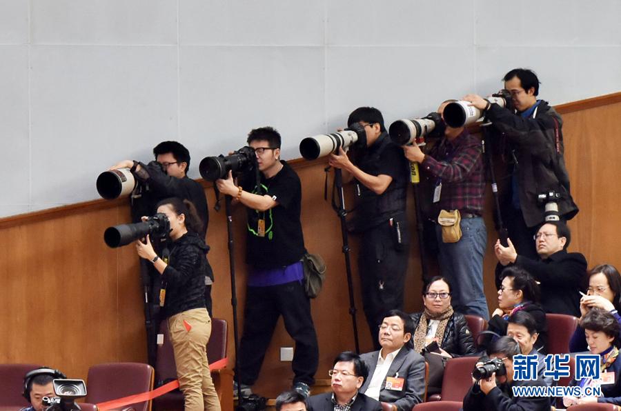 【“炮阵”】英雄站位略同。3月12日,在人大全体会议上,几位摄影记者选取了相似的拍摄角度,六门“大炮”整齐划一。 新华社记者李涛摄 图片来源:新华网