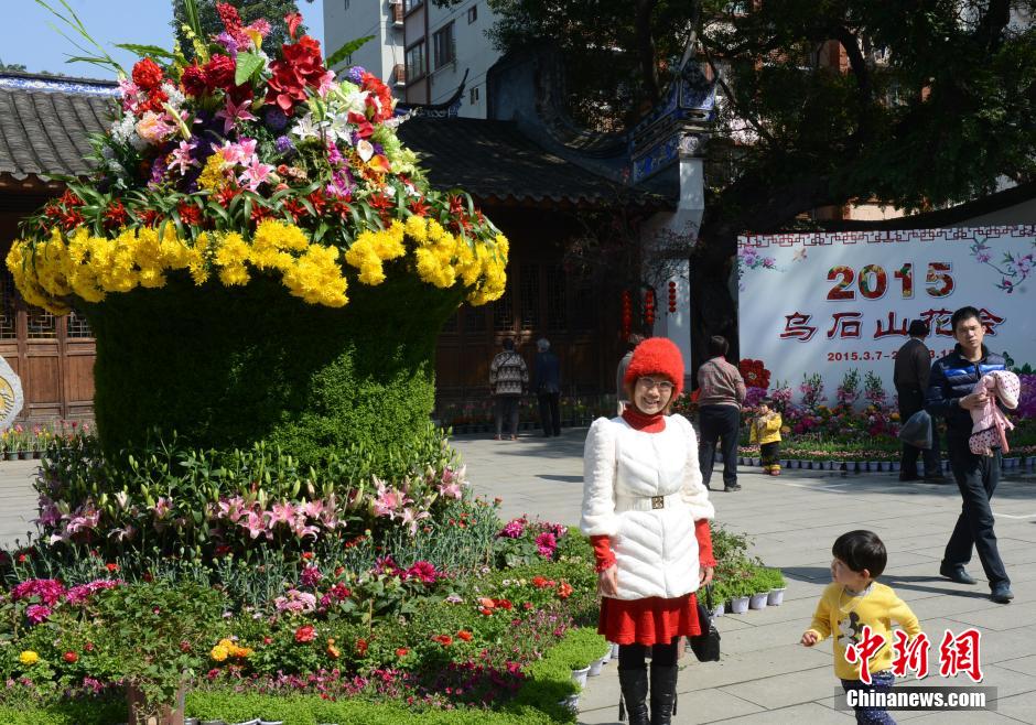 图为福州乌石山花会上万余盆花卉奇斗艳,吸引市民前来观赏。 刘可耕 摄