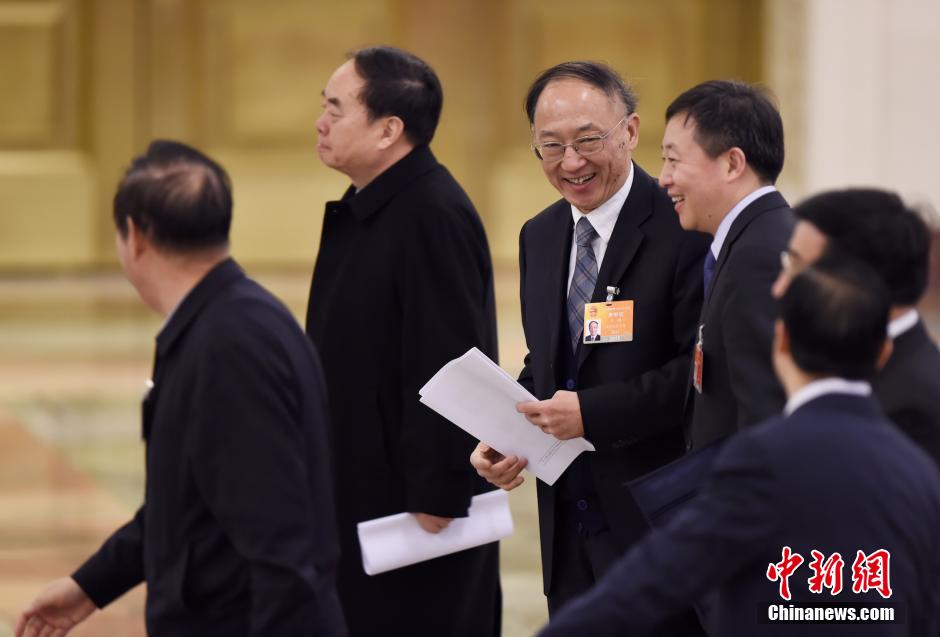 3月12日上午,第十二届全国人民代表大会第三次会议在北京人民大会堂举行第三次全体会议,听取最高人民法院院长周强关于最高人民法院工作的报告,听取最高人民检察院检察长曹建明关于最高人民检察院工作的报告。国家体育总局局长刘鹏参会。 中新社发 陈文 摄