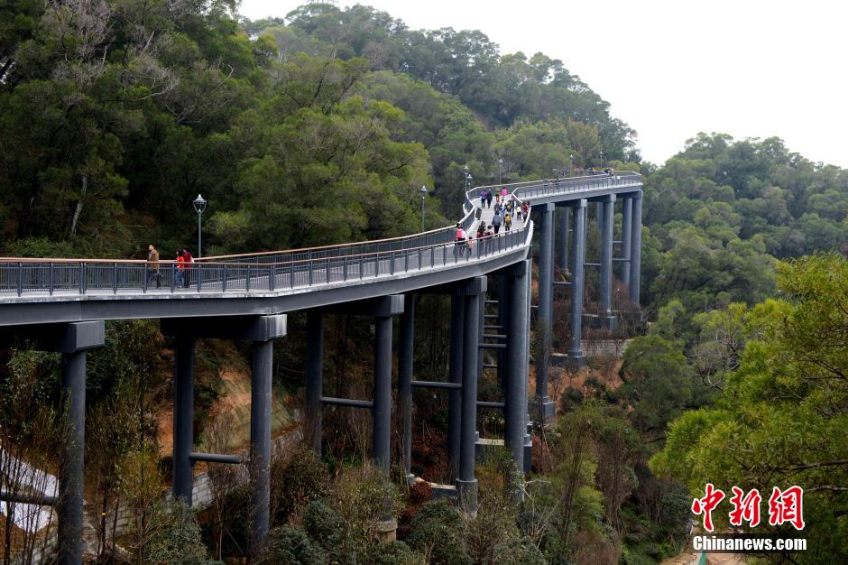 3月12日,福州市民在金鸡山公园高空揽城栈道上锻炼、游览城市景观。 中新社发 王东明 摄