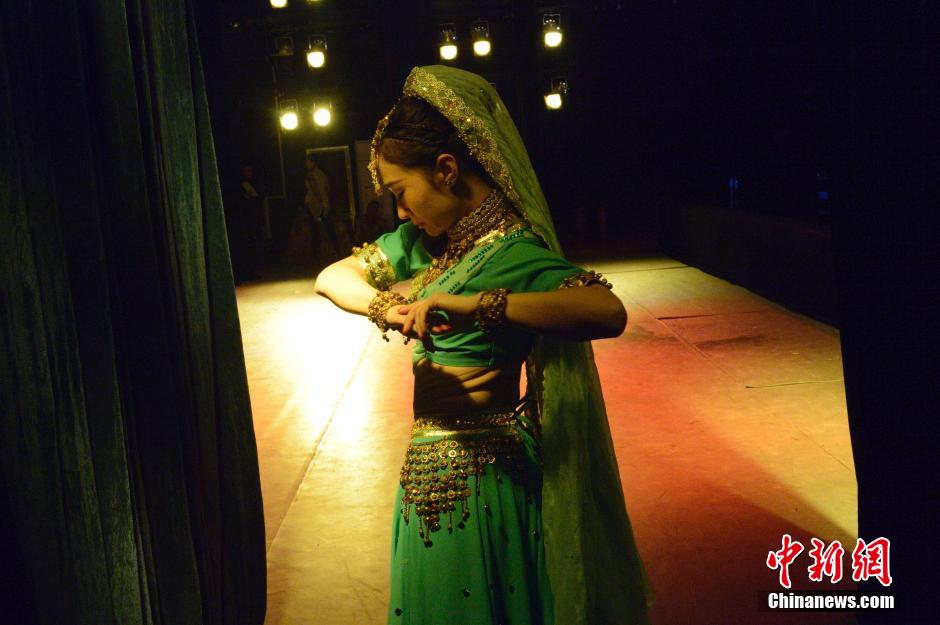 3月12日,呼和浩特民族歌舞剧院的演员准备上台表演。据悉,呼市羊年惠民演出从大年初八(2月26日)开演,至二月初二(3月21日)结束,每天上下午各一场,有歌舞、晋剧、二人台等剧目,市民免费入场观看。 中新社发 刘文华 摄