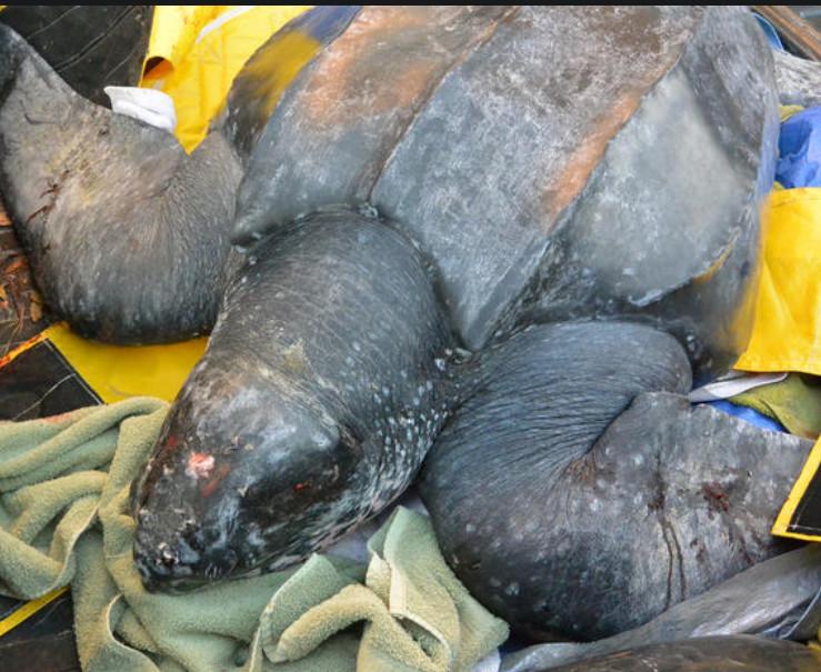据外媒报道,近日,美国南卡罗来纳州海洋馆海龟治疗所的科学家们救助了一只重达475磅(215公斤)的梭皮龟。这只梭皮龟于3月7日被冲刷至约基南岛水库岸边,身上有多处伤痕。工作人员将它运到资源研究中心,为它进行一系列治疗,没想到这个大家伙居然重达200多公斤,让工作人员吃惊。(来源:美国南卡罗来纳州海洋馆)