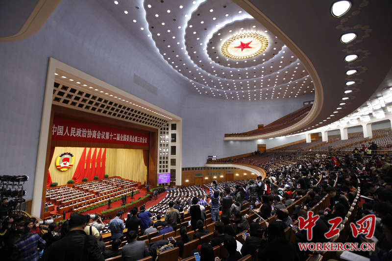 3月13日,政协十二届三次会议闭幕会在北京人民大会堂举行。   (中工网记者 韩靖摄)