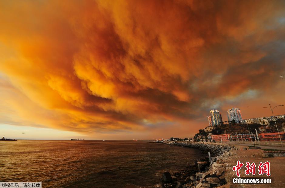 当地时间2015年3月13日,智利瓦尔帕莱索附近森林发生火灾,火势在当天晚间失去控制,浓烟直冲云霄,威胁港口,周边大约4500名民众紧急撤离。
