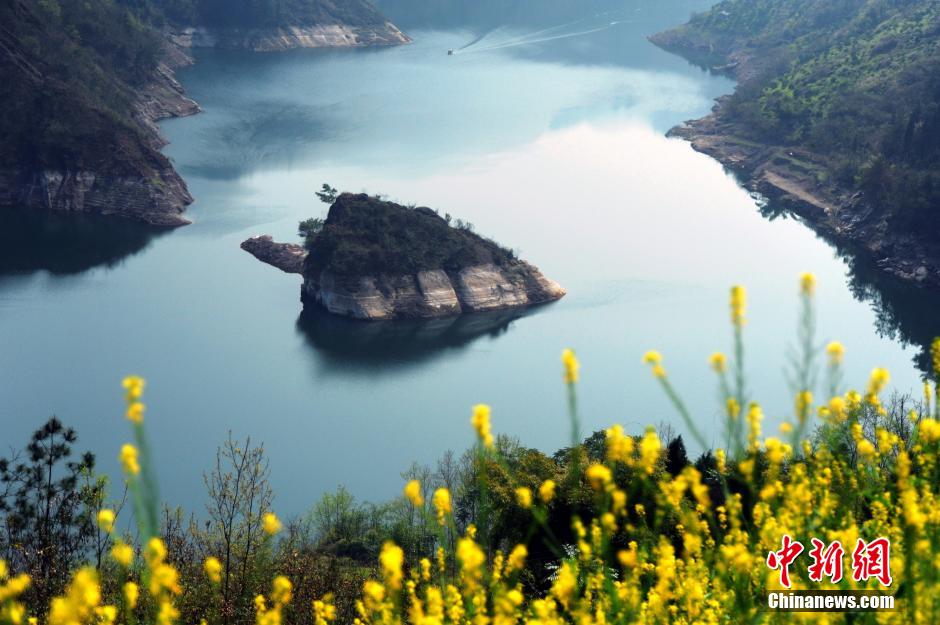 3月12日,在重庆市云阳县龙角镇龙市村拍摄的“巨龟出水”景象。三峡工程持续为下游春季补水,三峡水库水位消落至166.5米左右,水库出现“春龟出水”景观。“巨龟”本是长江著名支流磨刀溪上的连接山体,在三峡工程175米蓄水后,它便成为只有冒盖的“江心岛”;水位回落至163米至168米区间时,便形成独特的“巨龟出水”现象;当水位回落至145米后,山体相连、“巨龟”消失。 中新社发 饶国君 摄 图片来源:CNSPHOTO