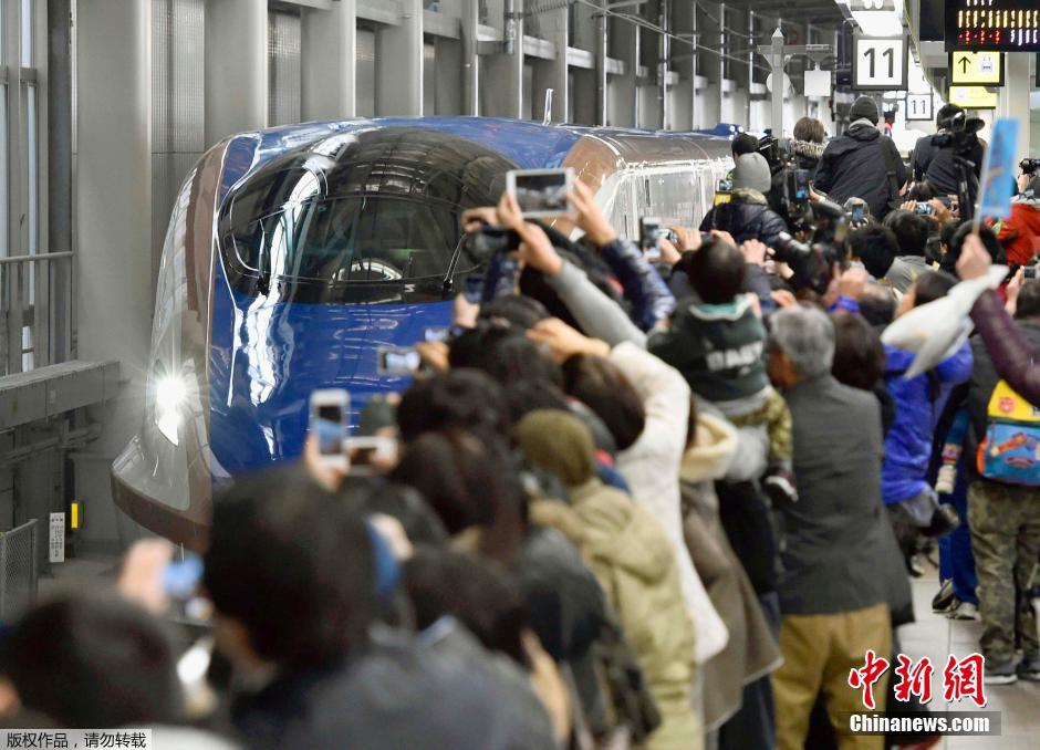 图为人们在新列车驶出时纷纷拍照留念。