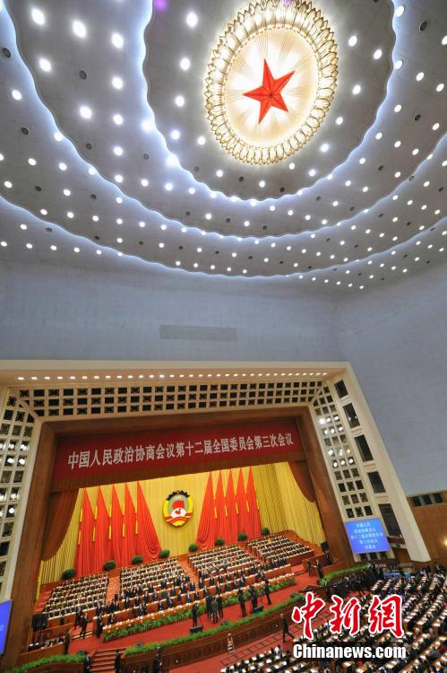 3月13日,全国政协十二届三次会议在北京人民大会堂举行闭幕会。中新社发 张浪 摄
