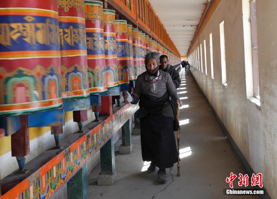 3月15日,记者走进四川阿坝格尔登寺,该寺位于阿坝县城西北角,具有120多年的历史,是阿坝县规模最大的藏传佛教格鲁派寺院,虔诚的信徒们在这里献上自己的心意,送去自己的祝福,祈求幸福,平安。安源 摄