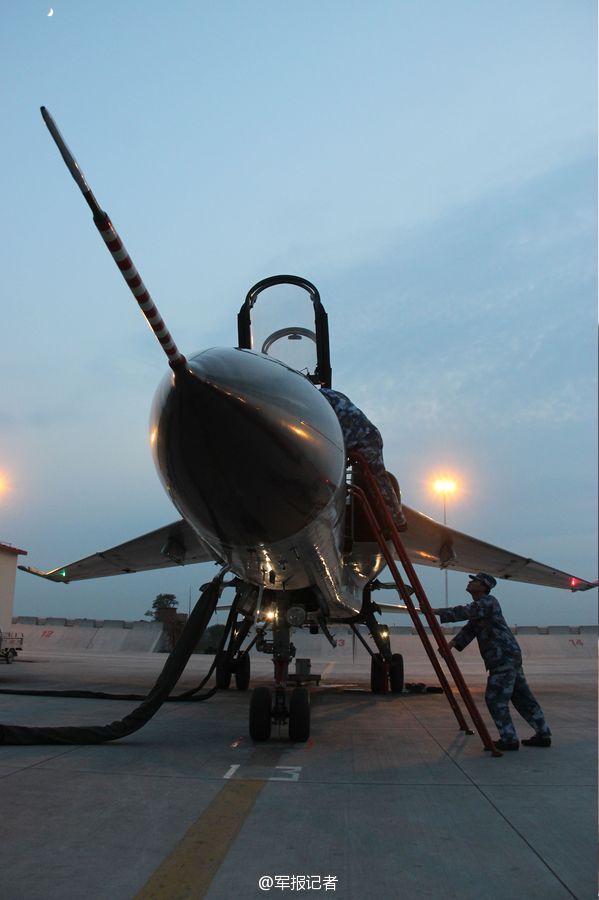 @军报记者:连日来,北海舰队航空兵某训练基地组织大强度跨昼夜飞行训练,两型战机数十架次分别从两个机场升空,进行带战术背景下的实战课目训练。飞行员出色完成编队、夜间低空机动和自卫空战综合飞行等课目训练!