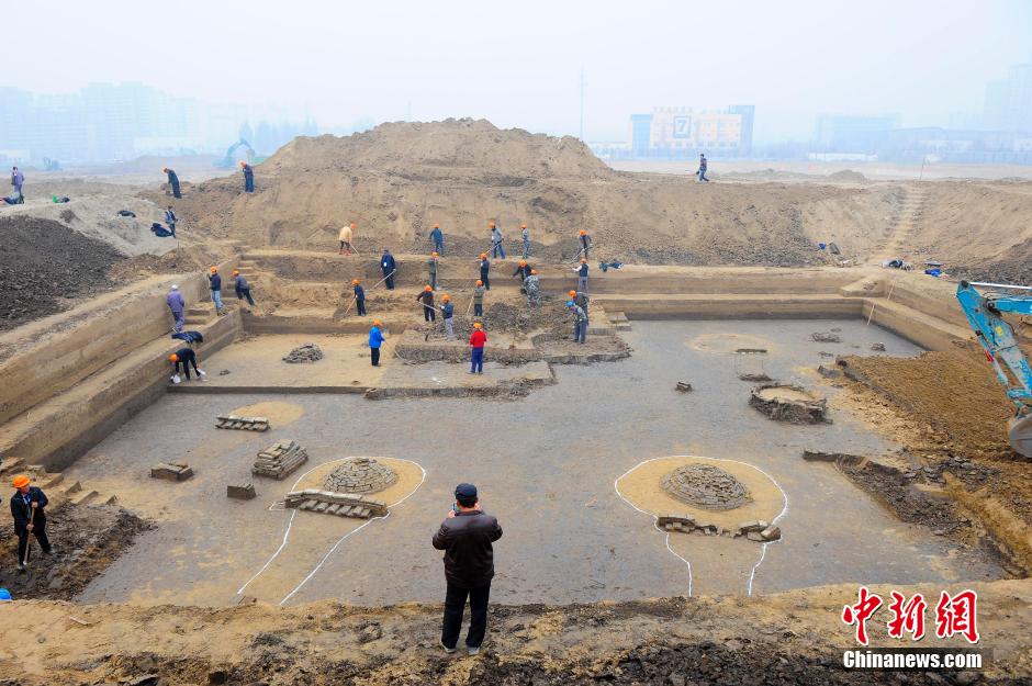 北京市文物局3月16日发布消息称,北京大兴区发现一处从东汉到辽金时期的墓葬群,共有129座古代墓葬。这批墓葬发掘数量之多、年代跨度之大、墓葬形制保存之完好,为近来北京地区考古所罕见。目前还剩下54座墓葬没有发掘,预计到今年5月底至6月初完成整个发掘工作。图为考古发掘现场。中新社发 北京市文物局供图