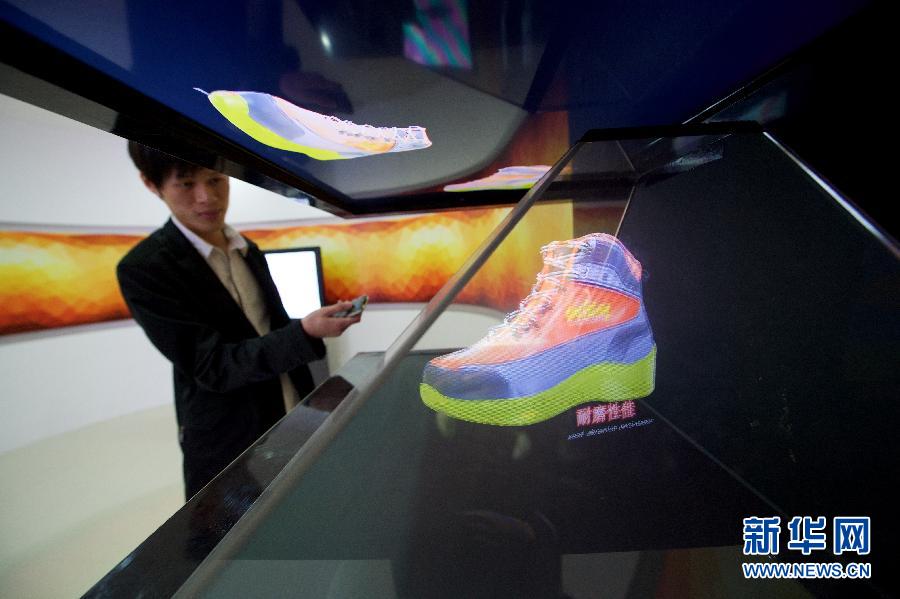 在晋江市洪山文化创意产业园内,一位科技公司工作人员演示自主研发的全息投影设备(3月13日摄)。近年来,福建省晋江市通过政策引导、平台搭建、人才引进等方式,让科技创新引领产业发展,从而进一步促进产业转型升级。2015年,晋江将统筹安排科技创新基地建设、产学研“校地”合作等人才专项资金1.26亿元,进一步强化创新驱动。新华社记者 姜克红 摄