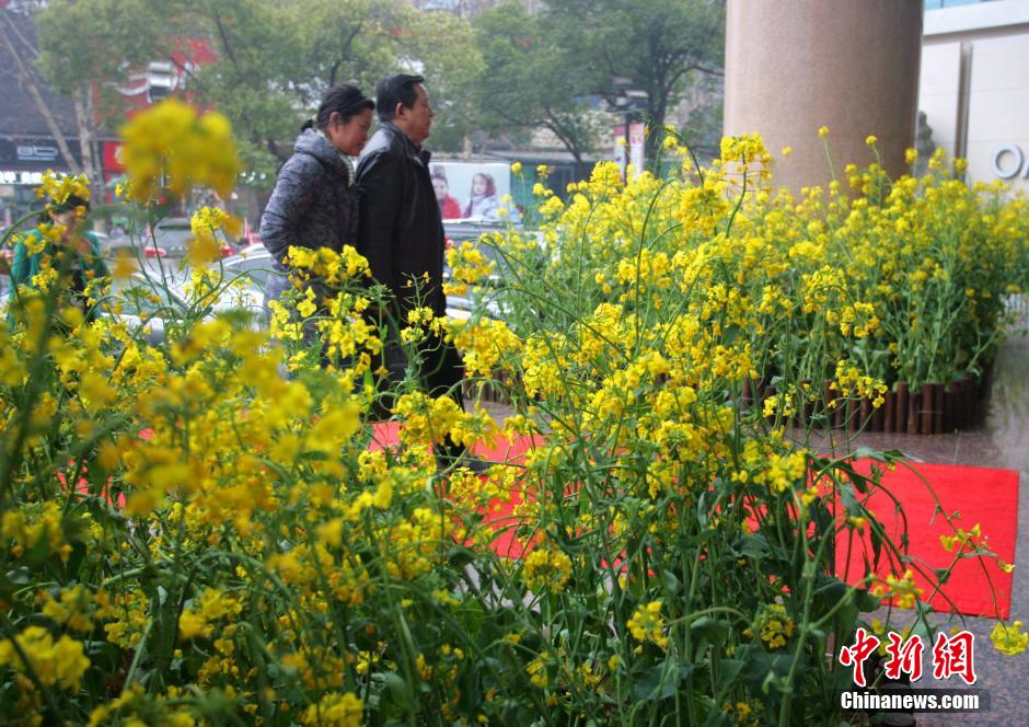 日前,湖北宜昌一商场将乡村田野的油菜花种到了门口,以此美化购物氛围吸引顾客。油菜花的乡土气息和商场的都市商业环境圆满结合,引来顾客一阵阵惊叹,许多顾客纷纷掏出手机自拍留影。朱敏 摄