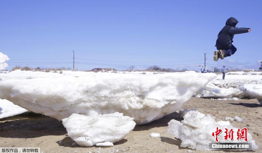 巨大的海冰漂到了美国马萨诸塞州科德角的海滩,当地民众开玩笑地说,“它们就像小型冰山,如果上面坐一只北极熊,就更有意思了”。