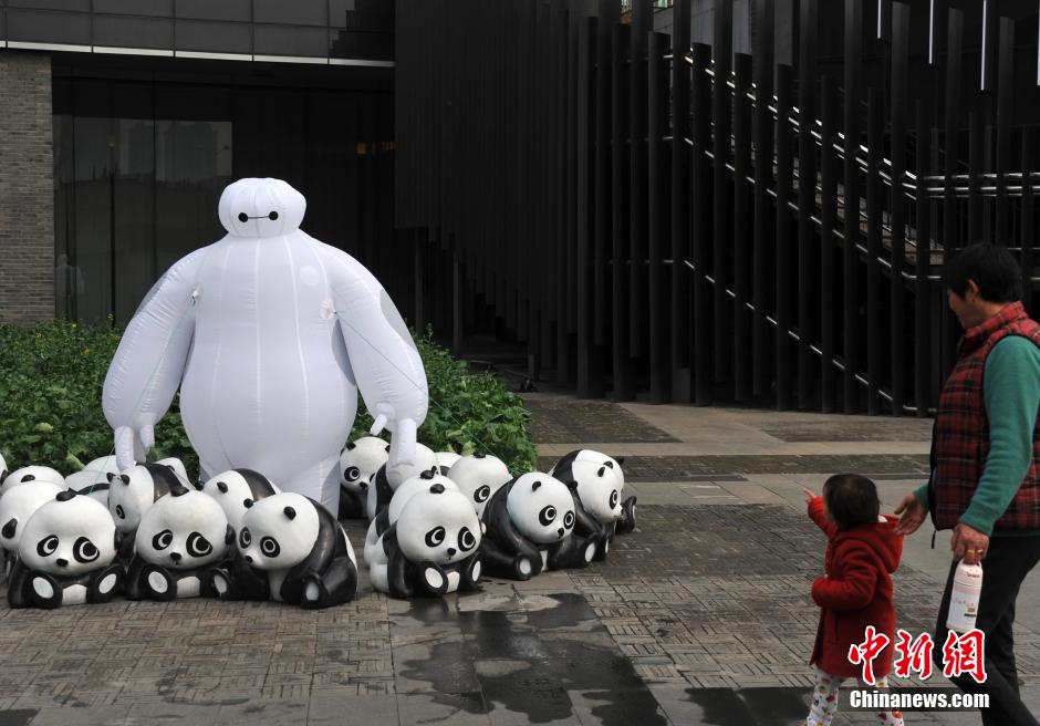 3月17日,迪士尼动画《超能陆战队》中的“治愈系”健康机器人-大白亮相合肥街头。 中新社发 韩苏原 摄