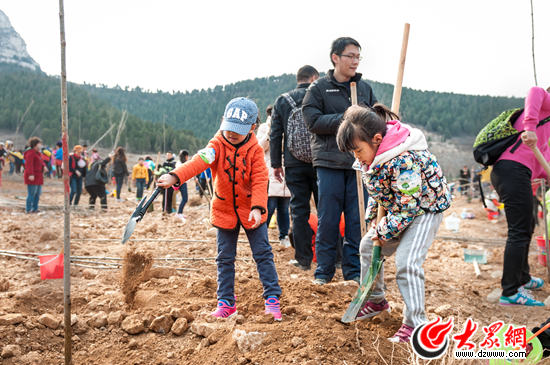 小个头扛起大铁锹,孩子们使出全身力气挖坑填土。