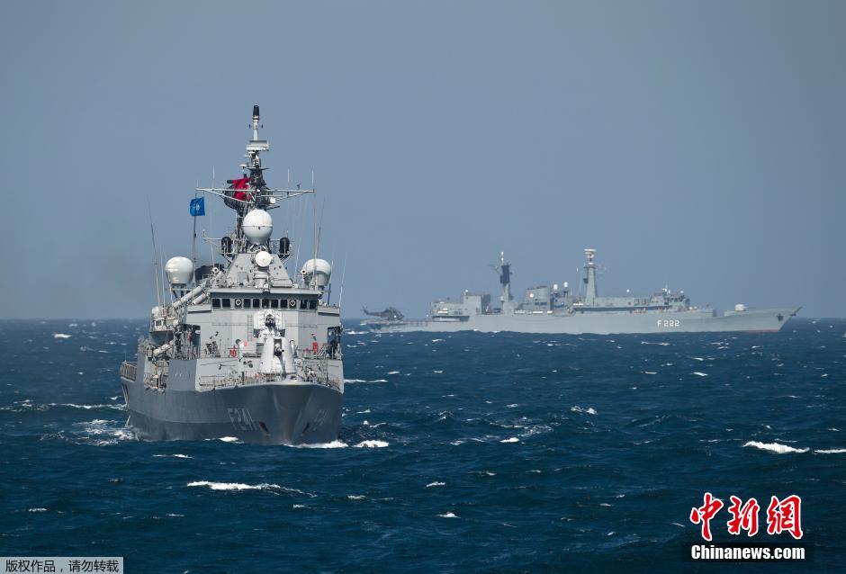当地时间2015年3月16日,罗马尼亚康斯坦察,北约多国舰船在黑海举行联合军演,参加演习的舰船包括美国军舰“维克斯堡”号、德国辅助舰以及来自加拿大、土耳其、意大利和罗马尼亚等国的护卫舰。