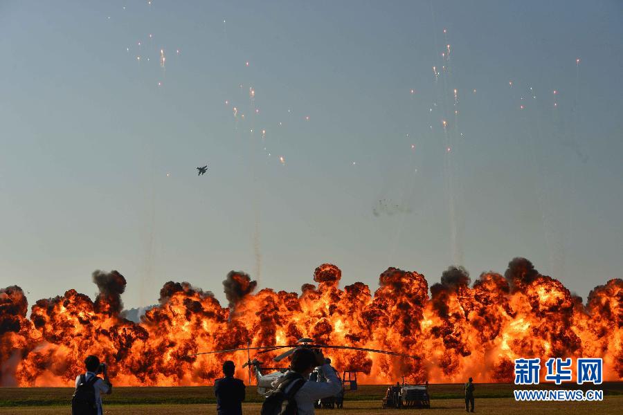 这是3月17日在马来西亚兰卡威国际海事与航空展开幕仪式上拍摄的飞行表演。 3月17日,第13届兰卡威国际海事与航空展在马来西亚兰卡威举行。本届海空展为期5天,吸引了来自36个国家和地区的512家参展商参展。新华社发(张纹综摄)