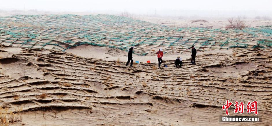 3月17日消息,阳春三月植树季,享誉“国家园林县城”的甘肃张掖临泽县,15万公务员挽袖编裤,在当地小泉子治沙区填埋沙障,栽植梭梭154亩,拉开了今年治沙造林的帷幕。据悉,多年来临泽人坚持义务植树造林,目前已初步构建“内有农田防护林网、中有防风固沙林带、外有天然植被封育区”的绿洲生态防护林体系,让绿洲向沙漠深处推进11公里,形成了“人进沙退”的良好态势。赵琳 摄