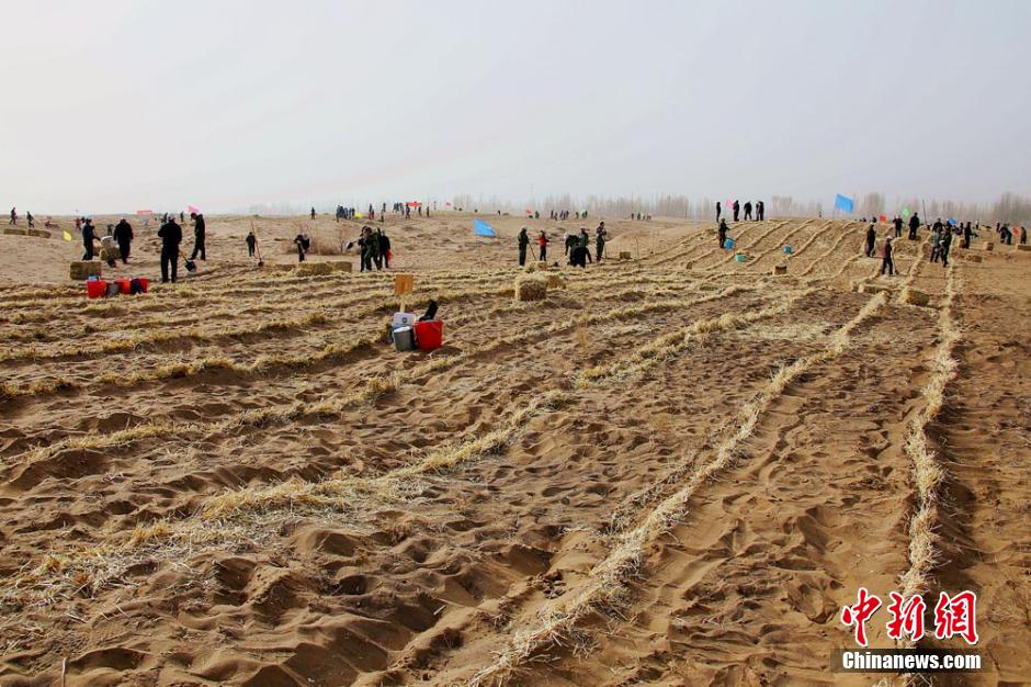 3月17日消息,阳春三月植树季,甘肃张掖拉开了今年治沙造林的帷幕。赵琳 摄