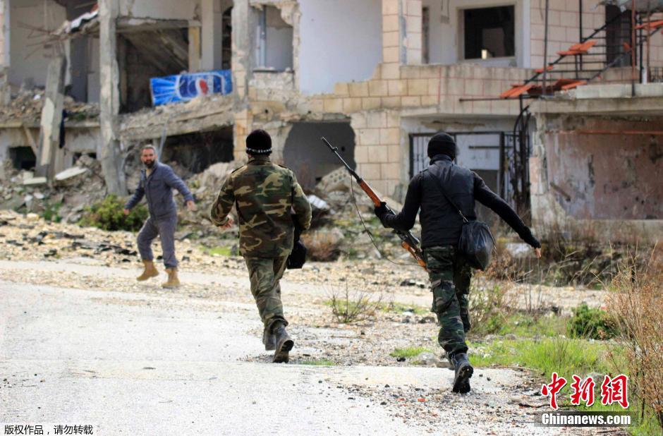 当地时间3月16日,叙利亚城市一片废墟,随处都是建筑物的残骸。