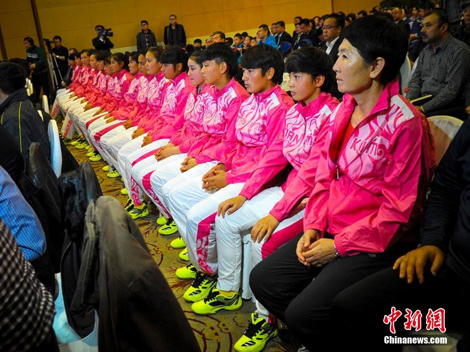 2015年3月17日,新疆雪峰女子足球俱乐部成立揭牌仪式在乌鲁木齐举行。刘新 摄