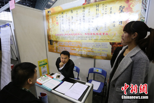 3月6日,河南郑州,大批求职者在2015年春季大型综合人才招聘会现场谋职位。本次招聘会提供的岗位涉及市场营销、人力资源、财务、土木工程、机械制造、电气自动化、国际贸易、生物工程等170多个专业,提供就业岗位近4万个。招聘会现场,一家饲料企业还发出皇帝“圣旨”诏书,求贤纳士。