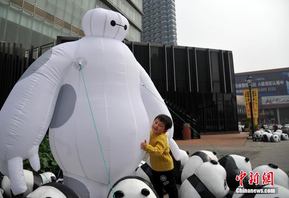 3月17日,迪士尼动画《超能陆战队》中的“治愈系”健康机器人-大白亮相合肥街头。 中新社发 韩苏原 摄