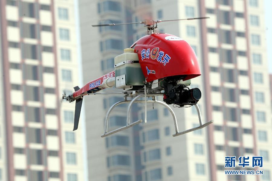 3月8日,山东省烟台市经济技术开发区公安局HW-Z330警用无人直升机升空演练。新华社发 申吉忠 摄 图片来源:新华网