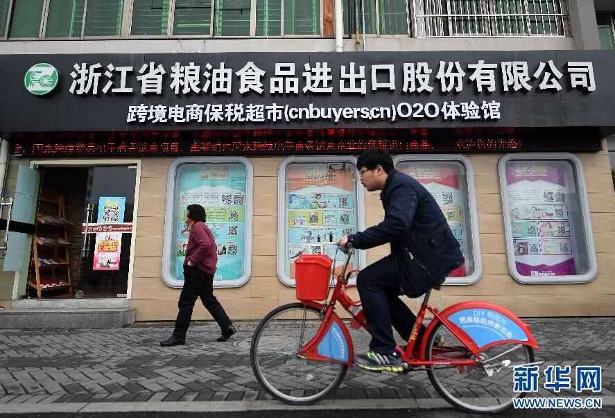 3月16日,行人从杭州跨境电商保税超市O2O体验馆外经过。 新华社记者韩传号 摄 图片来源:新华网