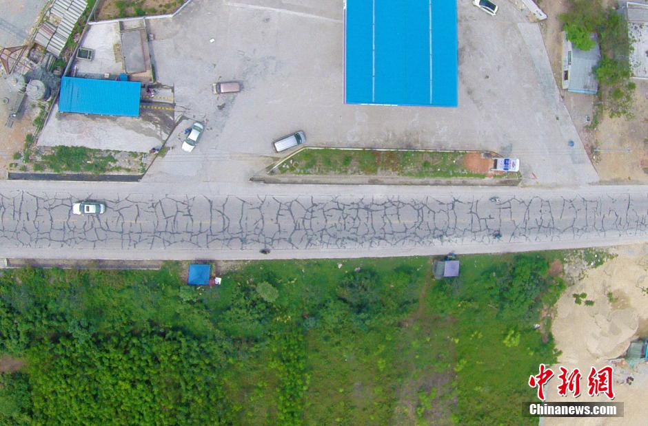 3月13日,航拍海榆西线铺仔、西培一带路段,公路“纹身”清晰可见。中新社发 骆云飞 摄