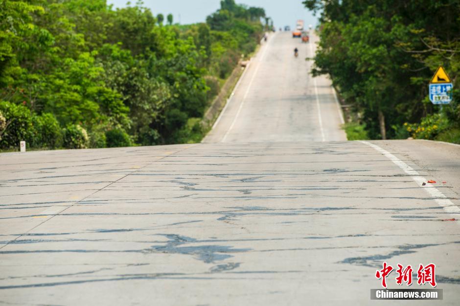 3月13日,海榆西线铺仔、西培一带路段的公路“纹身”清晰可见。中新社发 骆云飞 摄
