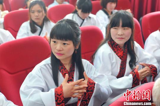 三峡大学开办国学班 学生穿汉服行传统拜师礼