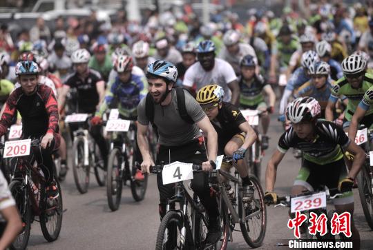 图为运动员们正在进行自行车越野赛。 陈超 摄