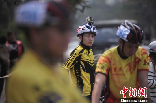 图为一运动员头上安装自拍器拍摄比赛过程。 陈超 摄