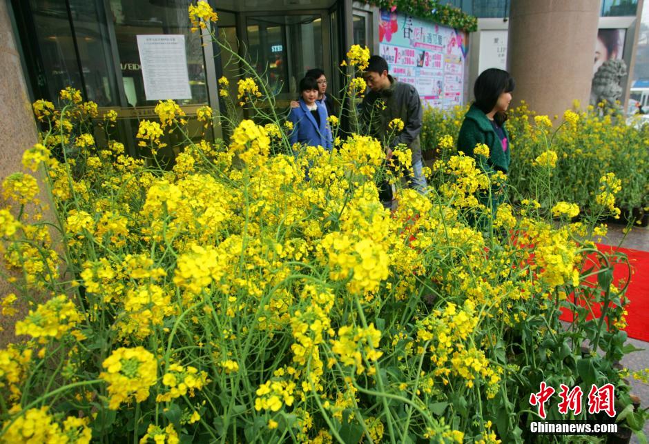 日前,湖北宜昌一商场将乡村田野的油菜花种到了门口,以此美化购物氛围吸引顾客。油菜花的乡土气息和商场的都市商业环境圆满结合,引来顾客一阵阵惊叹,许多顾客纷纷掏出手机自拍留影。朱敏 摄