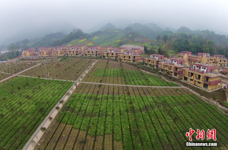 3月16日,雅安震灾区灾后重建新村新貌。四川雅安震灾区雨城区上里、中里镇新村聚居点,经建设者近两年来的建设已初见雏形,田园变成农业园和公园,油菜花、桃花、小洋楼等错落有致。中新社发 刘忠俊 摄