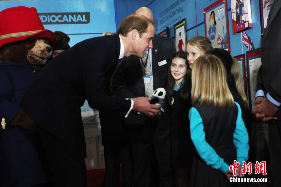 3月3日下午,剑桥公爵威廉王子现身上海电影博物馆,助阵真人动画喜剧电影《帕丁顿熊》中国首映。在与现场中英两国青少年互动时,来自英国的小朋友主动赠送给王子一只熊猫玩具,威廉王子高兴的接过礼物,并表示自己非常喜欢。中新社发 张亨伟 摄