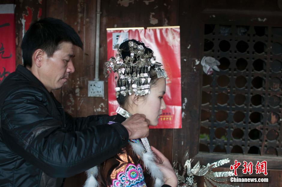 3月3日,广西融水苗族自治县安太乡寨怀村的侗族姑娘石香,参加当地传统的“十三坡会”。坡会在寨怀是一个极其盛大的活动,是苗族、侗族等各族人民盛大的节日,十里八村的各族同胞们相聚于寨怀。对于今年18岁的石香来说,坡会也是未婚的年轻女子展现自己青春风采的绝佳机会,在这一天其精心打扮自己,盛装出席。黄威铭 摄