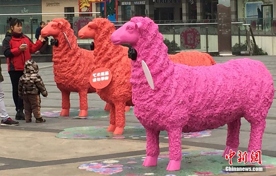 3月3日,由30只红色、橙色、紫红色,高1米3的树脂羊汇成的“摩登羊先生”展亮相昆山,吸引了不少市民驻足留影。胖乎乎的羊先生们踩着一方花草坪,面向四面八方,温顺可爱;佩带着黑色领结、高脚帽,尤显俏皮,平添羊年喜庆,市民们纷纷与羊先生合影沾喜气。黄莹 摄