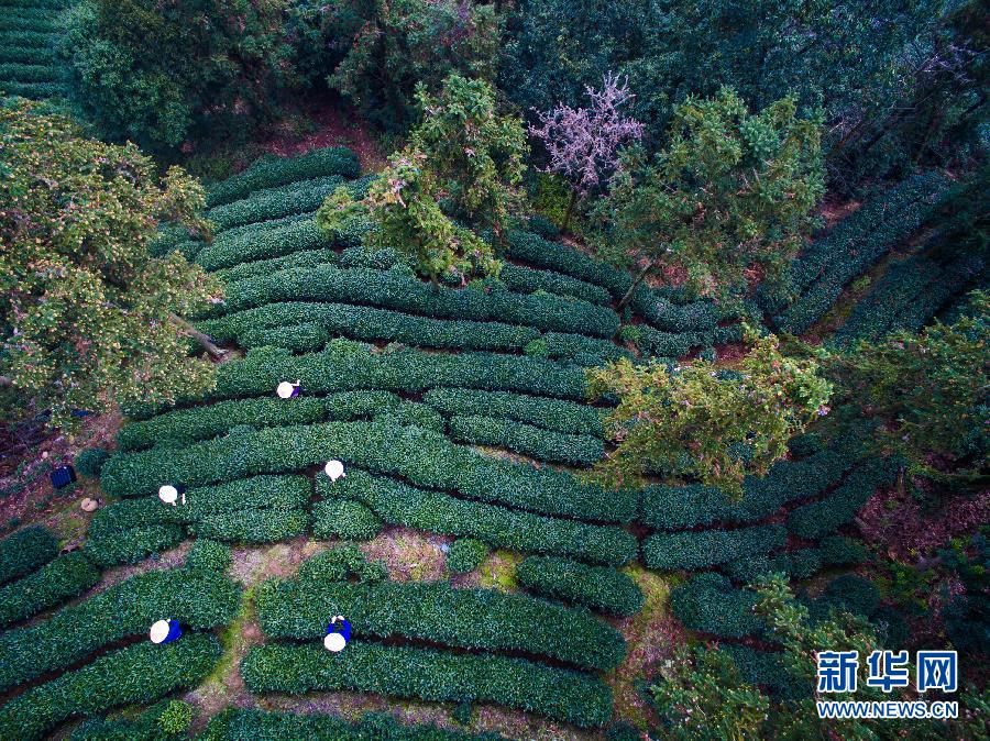 3月17日,茶农在杭州梅家坞村的茶园内采摘今年首批西湖龙井。随着天气转暖,浙江杭州日最高气温突破20摄氏度,西湖龙井茶一级保护区里的龙井村、梅家坞村、龙坞村、翁家山村等核心产茶区的茶农们陆续开始采摘今年第一批西湖龙井茶。据茶农介绍,近两天只是少量采摘,由于气候、水分、阳光适宜,龙井茶树的芽头生长较快,预计再过一周就会进入明前茶的大批量采摘期,产量和价格预计与去年持平。新华社记者 徐昱 摄