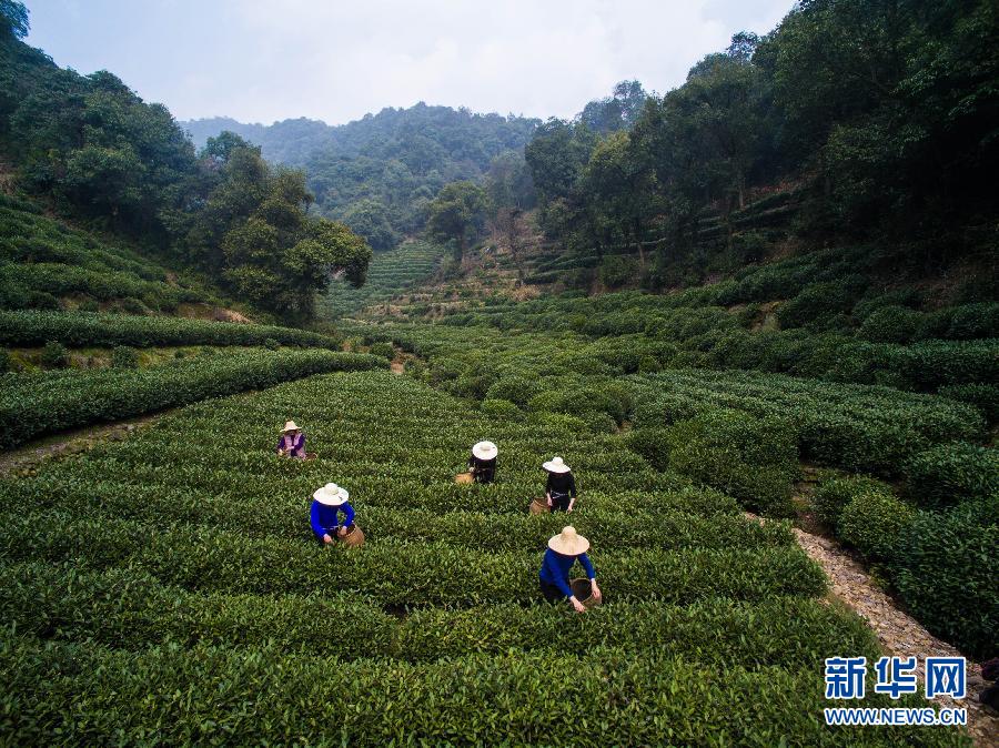 3月17日,茶农在杭州梅家坞村的茶园内采摘今年首批西湖龙井。随着天气转暖,浙江杭州日最高气温突破20摄氏度,西湖龙井茶一级保护区里的龙井村、梅家坞村、龙坞村、翁家山村等核心产茶区的茶农们陆续开始采摘今年第一批西湖龙井茶。据茶农介绍,近两天只是少量采摘,由于气候、水分、阳光适宜,龙井茶树的芽头生长较快,预计再过一周就会进入明前茶的大批量采摘期,产量和价格预计与去年持平。新华社记者 徐昱 摄