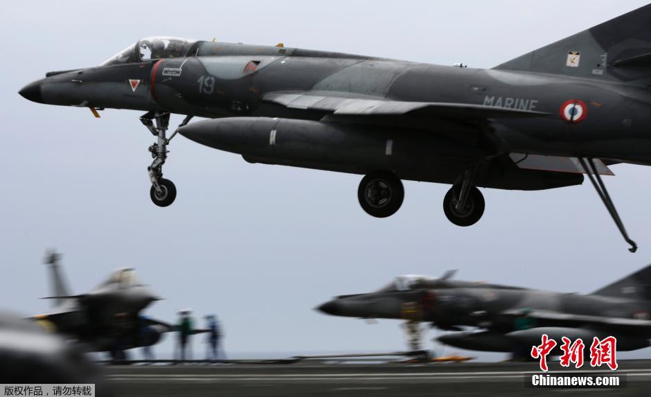 当地时间2015年3月17日,波斯湾,法国战机从“戴高乐”航母上起飞,将参与打击极端组织”伊斯兰国“的行动。
