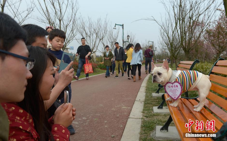 3月中旬,成都一男青年在青白江凤凰湖湿地公园为自己宠物“椰子”拍摄征婚照片,并对外为其“找对象”,现场被围观,随后发到网络受到数千网友关注。该男青年表示,自己爱狗6个月大,也差不多可以考虑寻找另一半了,他还透露了“椰子”的性格,这是一只特立独行的狗狗,不似普通的宠物犬爱黏人,“椰子”作为一只拥有法国血统的斗牛犬,比较喜欢独立的个人空间,并且不会刻意去讨好主人。图为征婚的宠物狗。张浪 摄