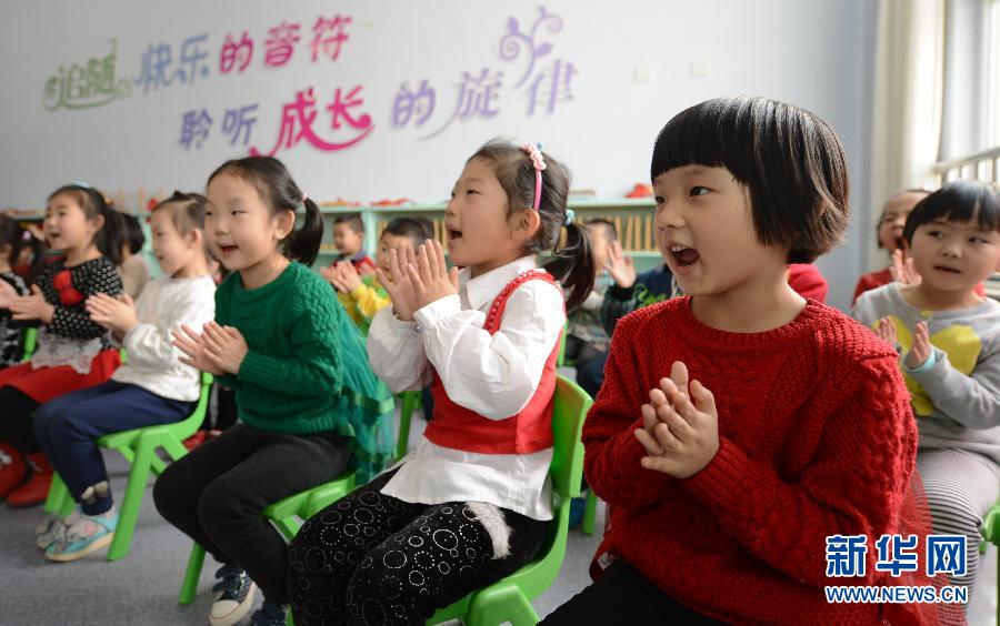 3月19日,河北承德县第二幼儿园的小朋友演唱儿歌。当日,河北承德县一些幼儿园开展传唱儿歌童谣活动,小朋友们在老师的带领下唱儿歌、做游戏,在欢声笑语中迎接“世界儿歌日”。 新华社记者王晓摄