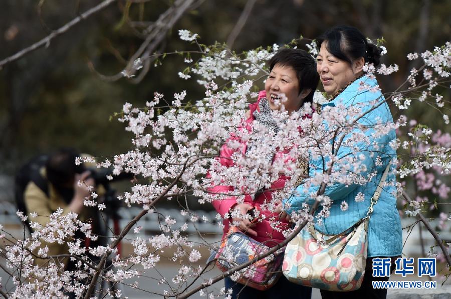 3月19日,游客在樱花丛中拍照留影。当日,以“潭清玉渊秀·樱红满园春”为主题的北京玉渊潭公园第27届樱花节开幕,60多株樱花报春绽放。玉渊潭公园有早、中、晚樱20多个品种、2000余株樱花,将次第开放,持续一个月。新华社记者 李俊东 摄