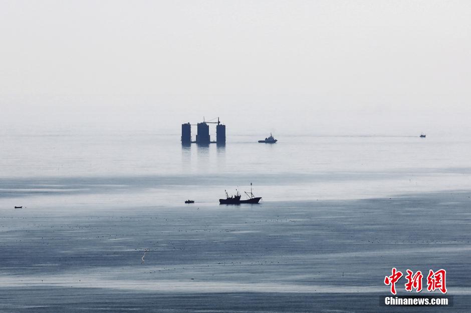3月19日上午,山东省青岛西海岸新区灵山湾海域,正在海边散步的市民发现,在灵山岛附近,海平面出现几座高楼状的物体,原本空荡的海平面突然出现这样的奇景,多数人猜测这是“海市蜃楼”。中新社发 王培珂 摄 图片来源:CNSPHOTO
