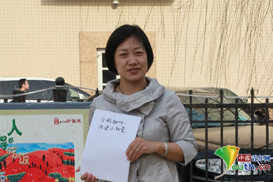 一位接受采访的金融业人士表示要“文明触网,传递正能量”。 中国青年网实习记者 张琪摄