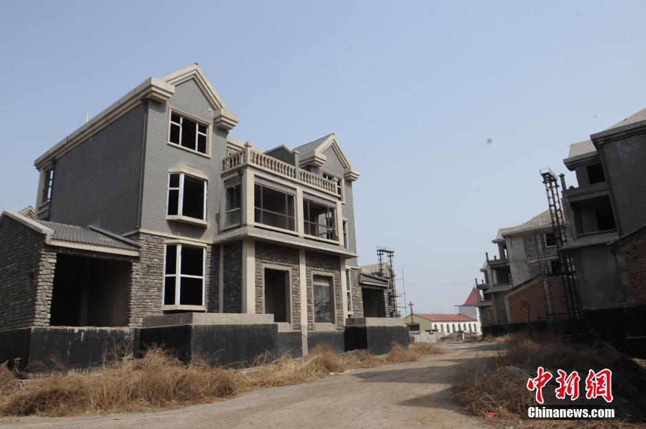 3月20日,山西太原古寨村近百栋别墅建筑沦为“烂尾”楼群,荒草丛生似“鬼城”。据周围村民讲,该别墅群为2008年初开工建设,所占土地为城中村改造计划回迁安置用地,后来因为开发商违规建设而停工,遭废弃至今已有7年之久。中新社发 韦亮 摄
