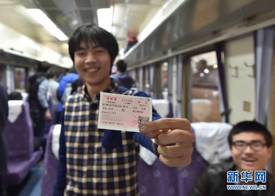 3月20日晚,乘客在列车上展示北京西站开往北京站的K7742次火车票。